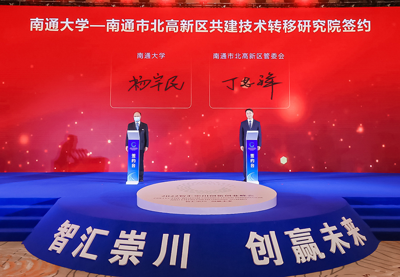 校党委常委、副校长杨宇民代表学校与南通市北高新区管委会党工委副书记、管委会主任丁志祥共同签订“南通大学—南通市北高新区共建技术转移研究院协议”。