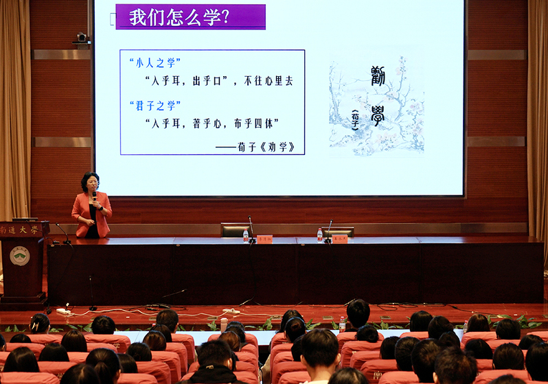 李清湘以“师范生的形象塑造”为主题,从“礼以义为尊、教师的礼仪形象、学会沟通”三个方面对师范生如何塑造形象进行了系统讲解。她围绕自身成长经历,结合现实案例充分论证了教师形象管理的重要性。她指出,教师角色塑造要注重“悦目、悦耳、悦心”,率先垂范,以高尚人格、模范言行为学生树立榜样。她希望每一位师范生做“四有”好老师,做好“四个”引路人,坚持“四个”相统一,脚踏实地,将梦想落于实处,行我所行,不负热爱。