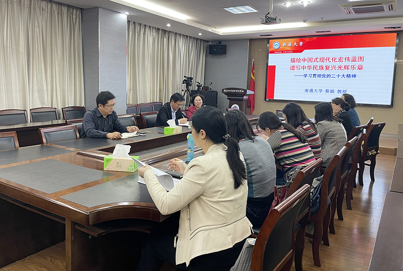 会议邀请马克思主义学院蔡娟教授作党的二十大精神专题学习辅导报告。蔡娟从党的二十大的重大意义、过去5年工作和新时代十年伟大变革的重大意义、习近平新时代中国特色社会主义思想的世界观和方法论、以中国式现代化推进中华民族伟大复兴的使命任务、以伟大的自我革命引领伟大社会革命的重要要求、坚持团结奋斗的时代要求六个方面,详细解读了党的二十大精神,带领全体党员深刻领会党的二十大的重大意义、新时代十年伟大变革,认真领悟新时代新征程中国共产党的使命任务,为全体党员学习贯彻二十大精神提供了专业指导。