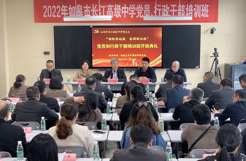 本次培训班由如皋市长江高级中学主办,我校外国语学院承办,来自如皋市长江高级中学50名党员、行政干部参加培训。培训班以《扬帆再起航 奋楫新征程》为主题,将围绕学习贯彻党的二十大精神,开展理论教学、现场教学、实境教育、交流研讨等内容丰富、形式多样的学习活动。