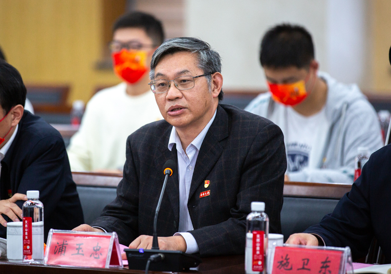 校党委书记浦玉忠主持宣讲座谈会。