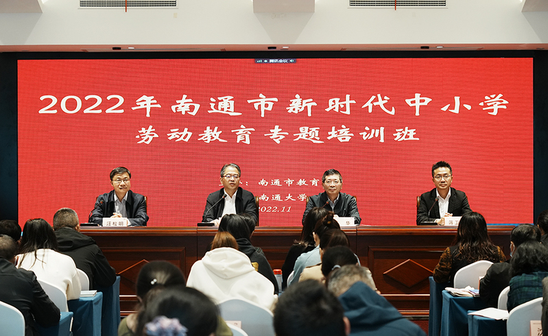 11月11日—12日,由南通市教育局主办,艺术学院承办的“2022年南通市新时代中小学劳动教育专题培训班”在我校举办。南通市教育局党组副书记、副局长朱全中,我校继续教育学院院长张华,艺术学院专员汪松明出席开班典礼,南通市教育局基础教育处副处长蒋卫星主持开班典礼。