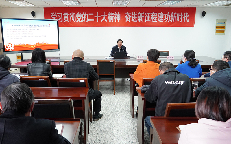 信息化中心副主任罗永平主持讲座,他要求全体教职工按照要求原原本本、全面系统、联系实际地学习贯彻党的二十大精神,切实把思想和行动统一到党的二十大精神上,立足本职工作,忠诚履职尽责,以实际行动践行信息化人的使命担当,为学校高水平大学建设和信息化事业高质量发展贡献力量。