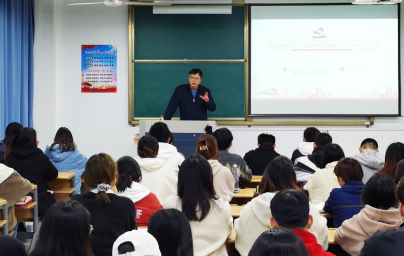 为深入学习贯彻党的二十大精神,强化广大学生党员的历史担当,扛起新时代新征程赋予青年的使命责任,11月23日,理学院研究生党支部、本科生党支部举办“学习二十大 奋进新征程”主题党日活动。南通市委党的二十大精神宣讲团成员、南通大学马克思主义学院教授王明华应邀作题为《二十大报告的核心要义与理论创新》专题讲座。