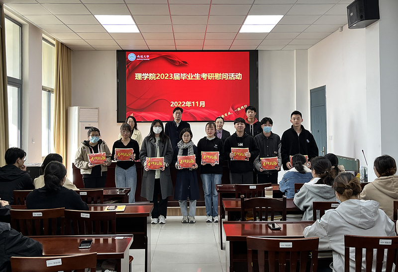 11月25日,理学院开展2023届毕业生考研慰问活动。学院党委书记朱城、党委副书记兼副院长侯蔚出席活动,并为考研学生送上爱心礼包。