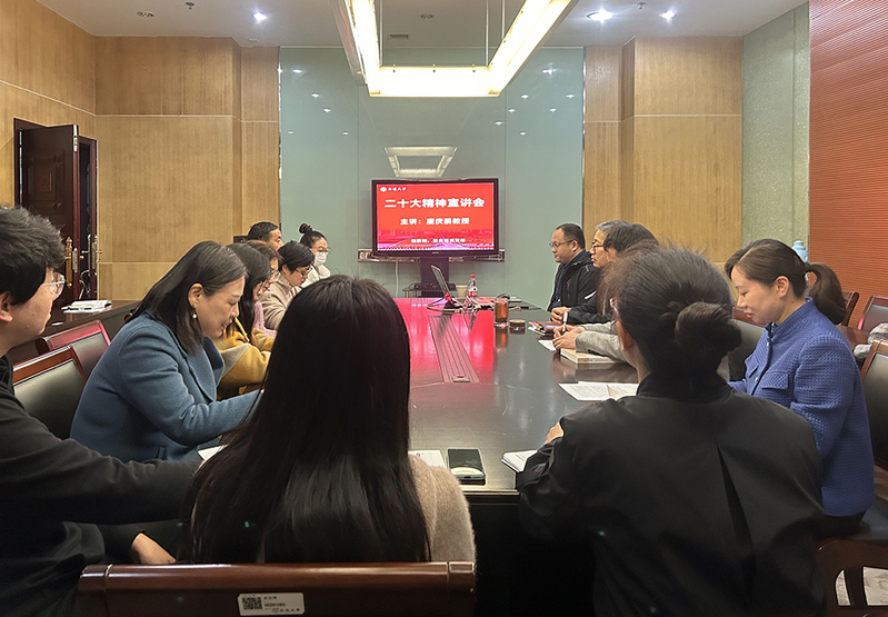 根据学校统一部署,11月28日下午,档案馆、校史馆党支部召开党的二十大精神宣讲报告会。学校宣讲团成员、马克思主义学院教授唐庆鹏应邀作宣讲报告。