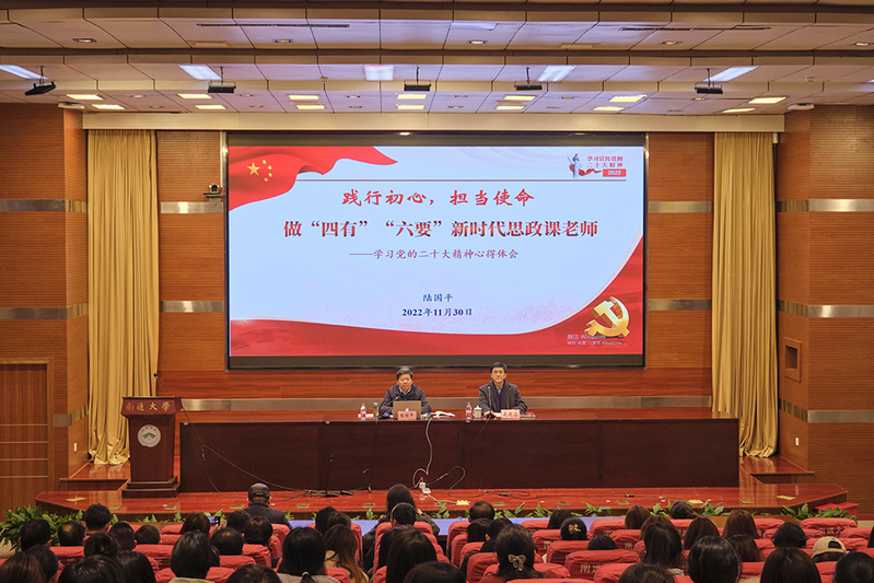 陆国平以《践行初心 担当使命 做“四有”“六要”新时代思政课老师》为题,以数理思维和“数说”方式全面、系统、生动地解读了党的二十大报告。