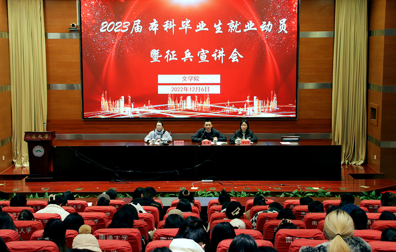 12月6日下午,文学院召开2023届本科毕业生就业动员暨征兵宣讲会。