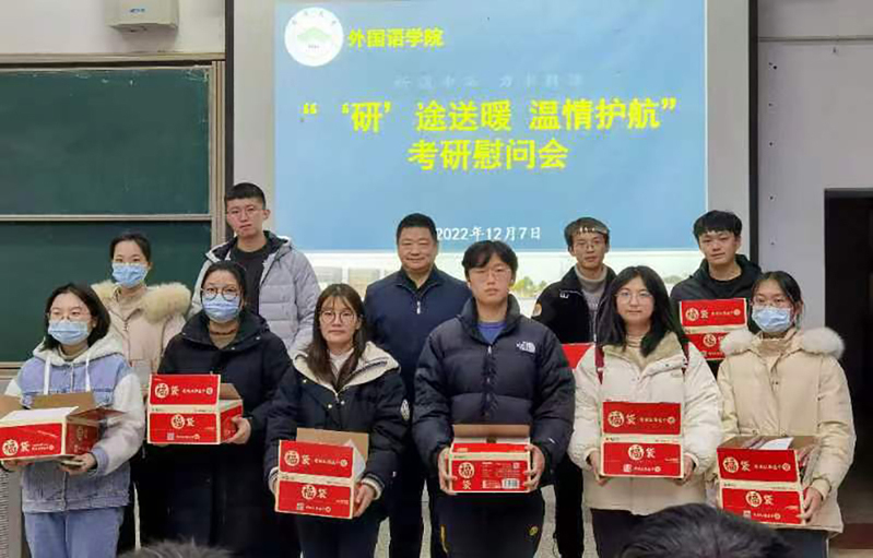 12月7日下午,外国语学院举办“‘研’途送暖 温情护航”考研慰问会。