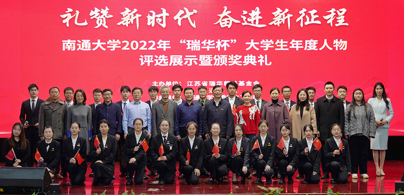 12月9日下午,我校举办“礼赞新时代 奋进新征程”2022年“‘瑞华杯’大学生年度人物”评选展示活动暨颁奖典礼。校长施卫东、江苏省瑞华慈善基金会执行理事长史兆荣出席活动。