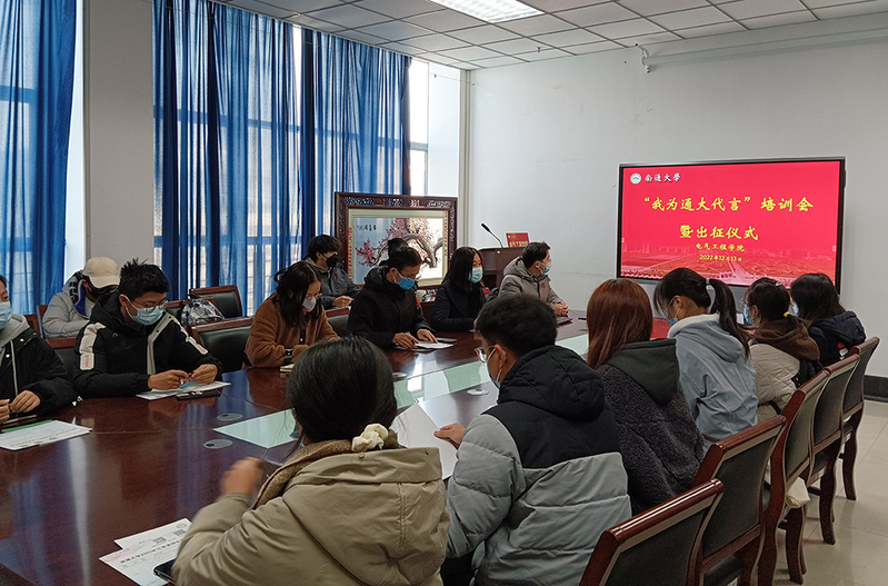 12月13日上午,电气工程学院举行“回母校看一看——我为通大代言”寒假社会实践专项活动培训暨出征仪式。电气工程学院党委副书记、副院长周平参加活动。