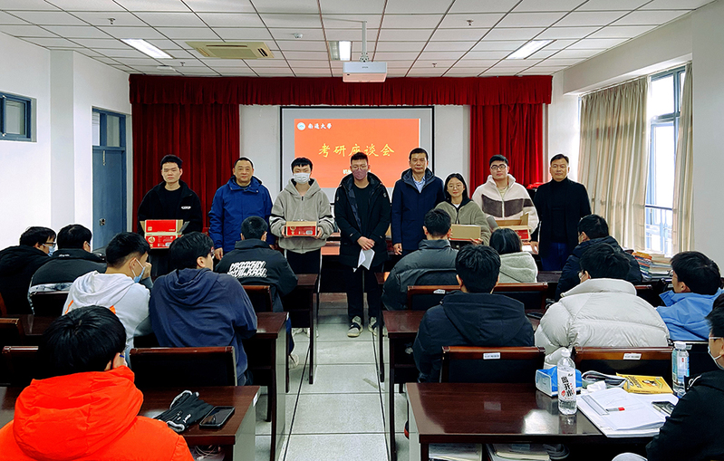 12月12日上午,机械工程学院举办2023届考研学生座谈会。学院党委书记张志刚,院长朱昱,党委副书记、副院长孙汉中出席座谈会,并为考研学生发放助考礼包。