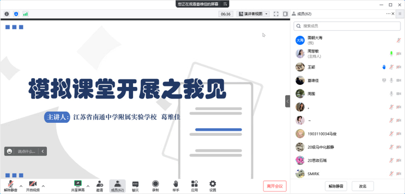 葛维佳以《模拟课堂开展之我见》为题,从模拟课堂的介绍、模拟课堂与其他教学活动的区别、模拟课堂的基本要求以及模拟课堂有效实施的关键等四个方面进行讲解。他简要介绍了模拟课堂教学的定义、意义和特点,区分了模拟课堂教学与常规课堂教学在对象、目的、组织教学等方面的不同,并重点分析了模拟课堂教学与说课的区别。他提出,模拟课堂具有精彩的预设、自如的掌控以及有效的互动三个基本要求,要精心准备课堂导入和结尾部分,创设正常的教学情境,展现出充分的自信、自然的教态。同时,他以“六条”“七忌”等关键词提纲挈领地讲授了如何有效实施模拟课堂,并分享了授课经验和问题对策。