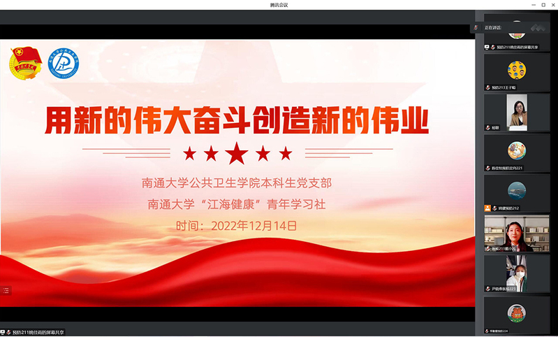 12月14日下午,公共卫生学院在线上举办“用新的伟大奋斗创造新的伟业”主题教育活动。学院党委副书记、副院长杨敏参加活动。