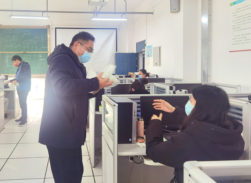 活动中,徐红波带领与会老师为现场所有同学发放N95口罩。同学们感受到学院关爱,纷纷表示将全力以赴,争取以优异成绩回报学院和老师。