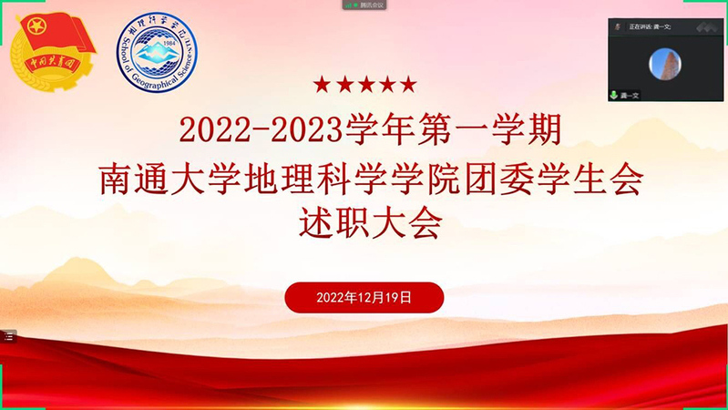 12月19日晚,地理科学学院举行2022-2023学年第一学期团委、学生会干部述职评议工作会议。