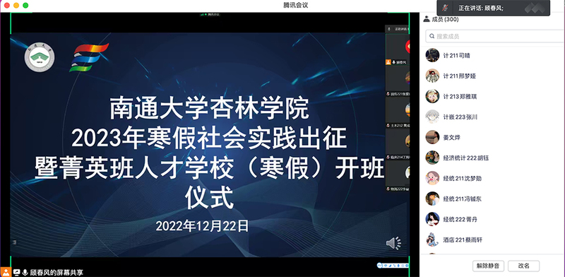 杏林学院团委全体委员,各学部共青团工作负责人,学院、学部两级学生会成员,2020-2022级各班团支书、班长,寒假社会实践各小分队成员,2022级菁英班学员合计300人在线参加活动。