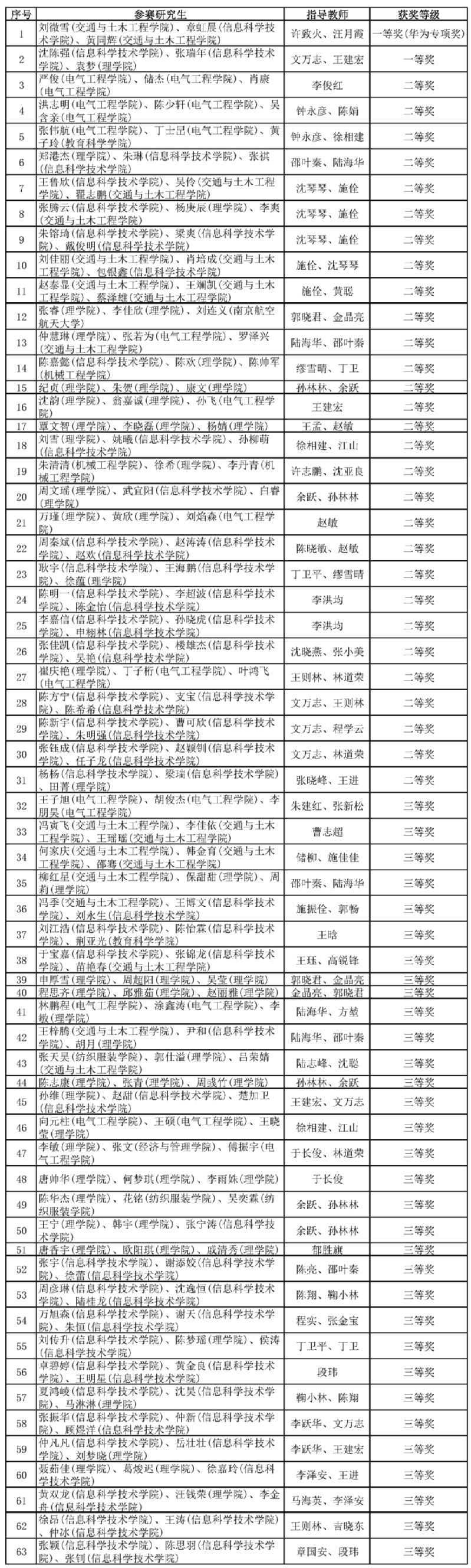 我校研究生获第十九届中国研究生数学建模竞赛一等奖2项。