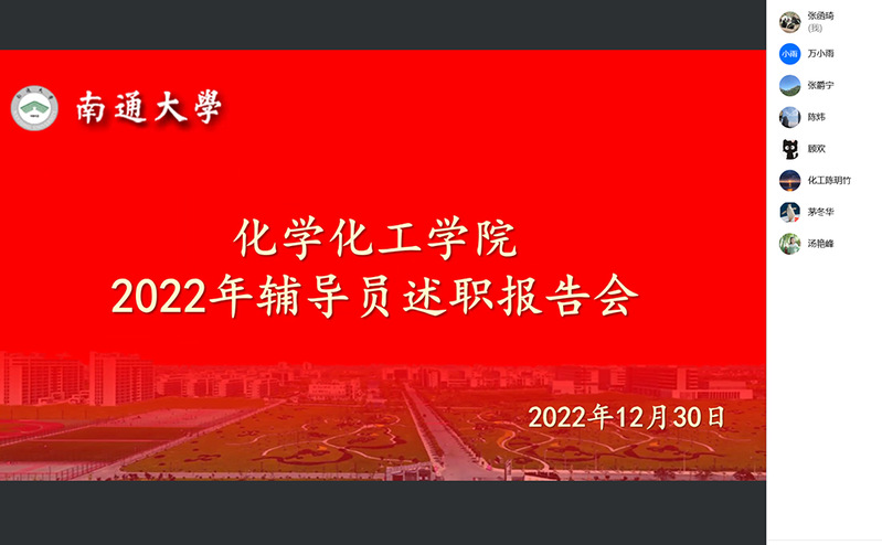 12月30日下午,化学化工学院在线举办2022年度辅导员述职报告会。
