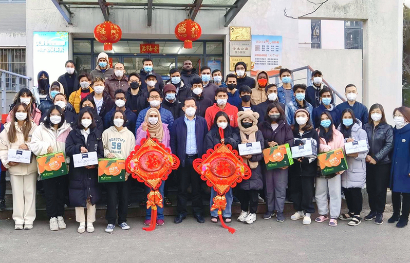 1月10日,校党委常委、副校长王卫东看望慰问寒假期间留校的国际学生,为他们送上生活物资和美好的新年祝福。