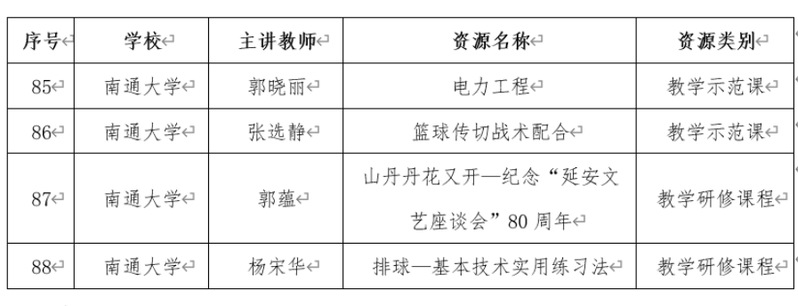 近日,受省教育厅委托,江苏高校教师教学发展研究会和江苏省高等学校教育信息化研究会公布江苏高校教师教学能力建设“云书院”首批认定的在线研修资源名单。我校共有四门课程入选,其中电气工程学院郭晓丽老师的《电力工程》、体育科学学院张选静老师的《篮球传切战术配合》被认定为教学示范课,艺术学院郭蕴老师的《山丹丹花又开—纪念“延安文艺座谈会”80周年》、体育科学学院杨宋华老师的《排球—基本技术实用练习法》被认定为教学研修课程。