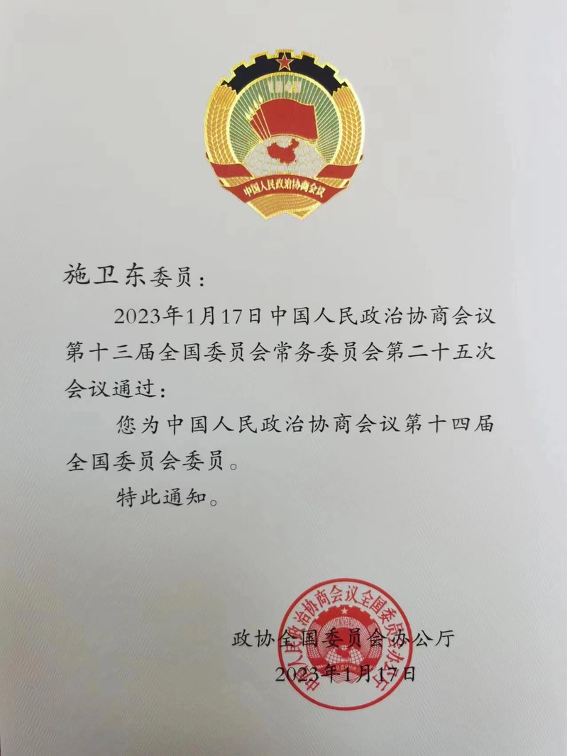 1月17日,政协第十三届全国委员会常务委员会第二十五次会议在北京闭幕,会议通过了中国人民政治协商会议第十四届全国委员会委员名单。本届共产生全国政协委员2172人,其中教育界委员103人。我校校长施卫东作为教育界委员再次名列其中。