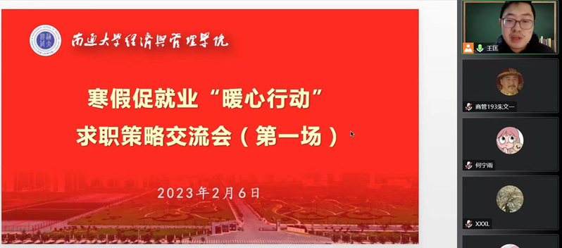 为充分利用寒假窗口期,切实帮助学生提升职业规划能力,解决求职过程中面临的实际问题,2月6日,经济与管理学院开展首场寒假促就业“暖心行动”——求职策略专题交流会。
