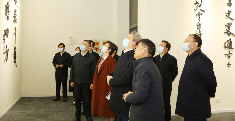 吴新明一行走进范曾艺术馆,现场参观范曾先生艺术成就展及其书画作品陈列展,我校原副校长、范曾艺术馆终身馆长周建忠教授介绍展馆有关情况。在即将建成投用的第三食堂,吴新明详细了解学校教学组团及辅助设施建设项目工作进展情况,并就啬园校区建设规划提出具体建议。