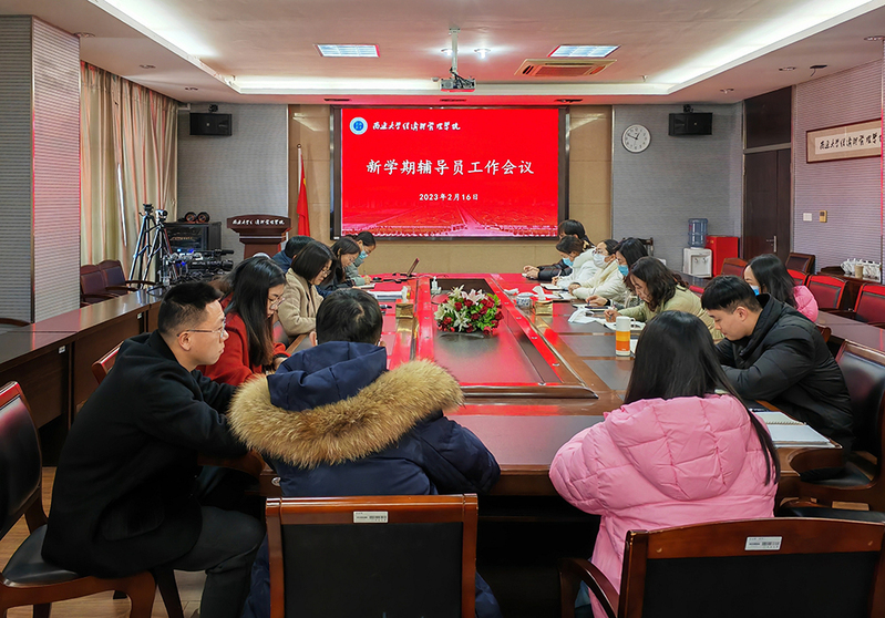 2月16日下午,经济与管理学院召开新学期辅导员工作会议,传达学校学工例会重要指示和会议精神,部署新学期开学前后各项学生工作。学院党委书记蒋国宏,党委副书记、副院长葛慧敏出席会议。