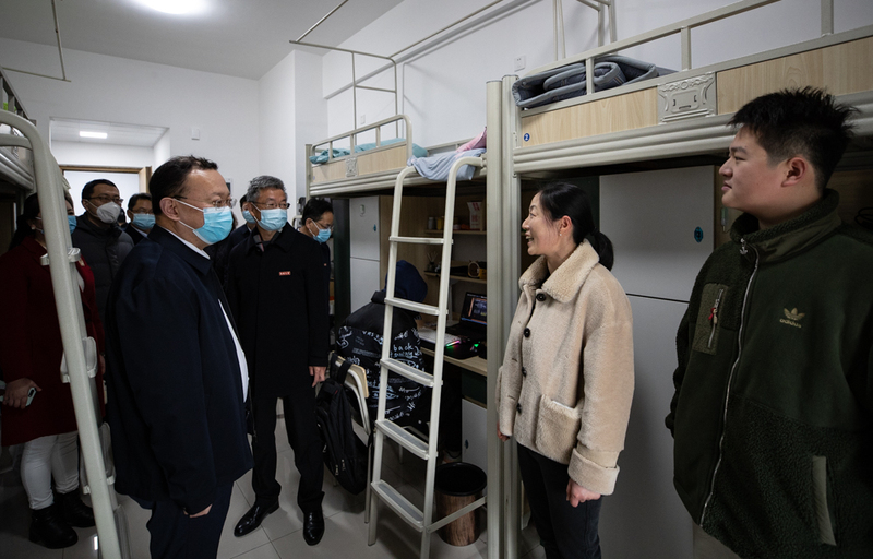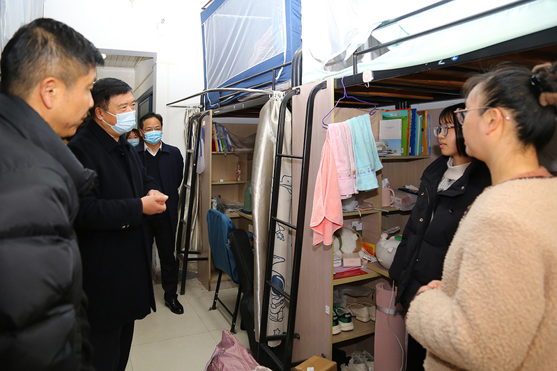 校领导深入宿舍看望返校学生并与家长亲切交谈。
