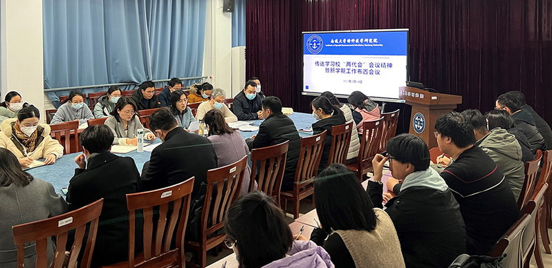 徐建带领大家学习了校党委书记尚庆飞《共担新使命 同塑新辉煌》的讲话精神和校长施卫东作的题为《凝心聚力 勇毅前行 为建成特色鲜明的高水平大学不懈奋斗》的学校工作报告精神,并就本学期工作提出要求:各系室中心要认真学习校“两代会”精神,围绕高质量发展要求,争取各项工作取得新突破;要加强制度建设,凝心聚力实现学院高质量发展,全力以赴推进目标任务落实。