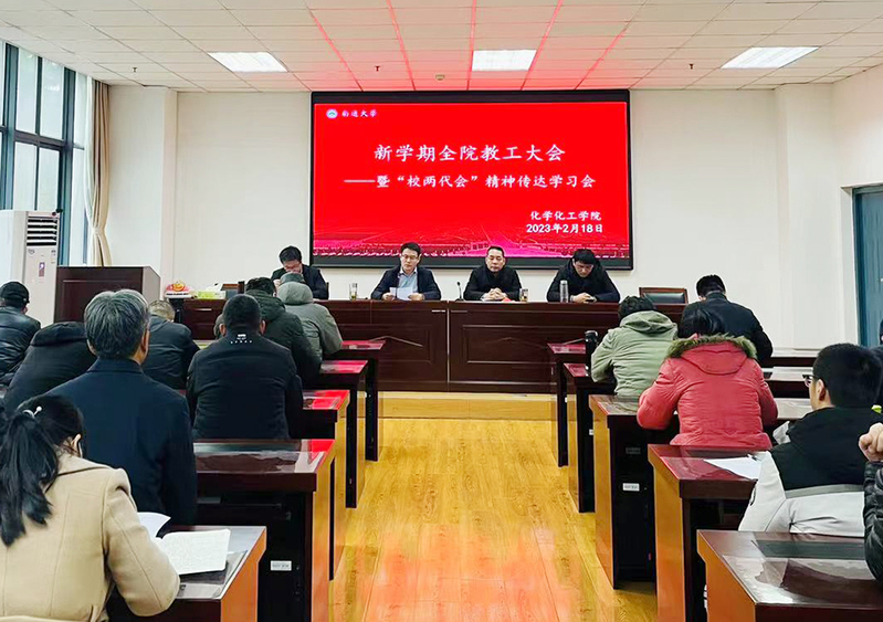 2月18日上午,化学化工学院召开新学期全体教职工大会,学习贯彻南通大学第四届教职工代表大会暨第三届工会会员代表大会第四次会议精神,并部署新学期各项工作。