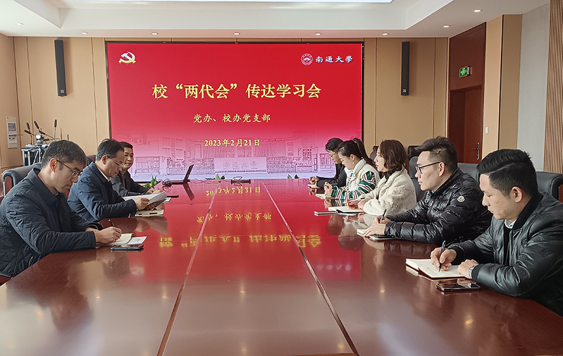 党委办公室、校长办公室主任吴如高主持会议,会议传达学习了校党委书记尚庆飞、校长施卫东在南通大学第四届教职工代表大会、第三届工会会员代表大会第四次会议上的讲话精神,认真解读了学校2023年总体工作要求,并结合办公室工作职责,对各项重点工作进行了研究部署。