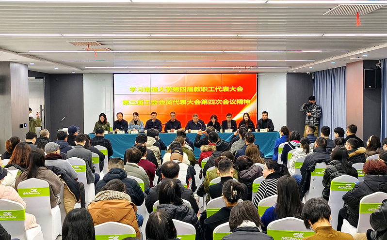 继续教育学院原院长张华、副院长顾坚分别传达了校党委书记尚庆飞、校长施卫东在南通大学第四届教职工代表大会暨第三届工会会员代表大会第四次会议上的讲话精神。