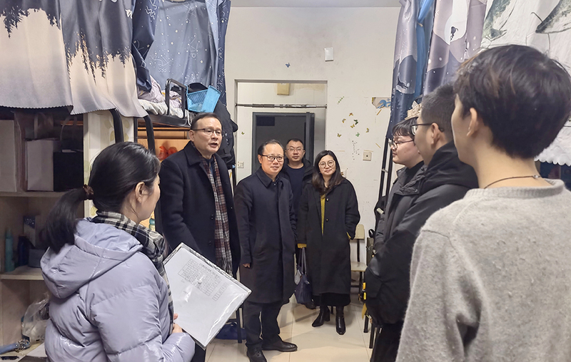 在学生宿舍,学院领导与同学们进行了亲切交流,详细了解同学们的思想状况、身心状态和学习情况。学院领导对新学期返校学生提出四点期望:一要增强健康意识,做好自身健康的第一责任人,遇到问题及时与辅导员沟通交流;二要合理规划学习,科学制定学习计划,做好延期考试备考和新学期课程预习,尽早树立考研志向;三要保障消防安全,宿舍严禁违章电器与明火,不断增强消防安全意识;四要勇于开拓创新,积极参与各类科创竞赛,以赛促学,不断提升和完善自我。