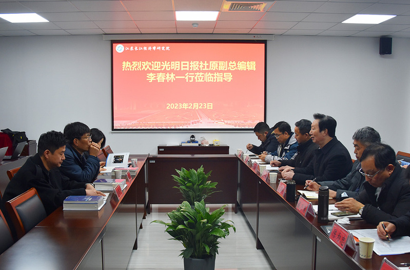 2月23日下午,光明日报社原副总编辑李春林一行来校调研交流智库建设工作。校党委书记尚庆飞会见了李春林一行,校党委常委、副校长、宣传部部长吉明明陪同会见,江苏长江经济带研究院院长兼首席专家成长春主持座谈交流会。