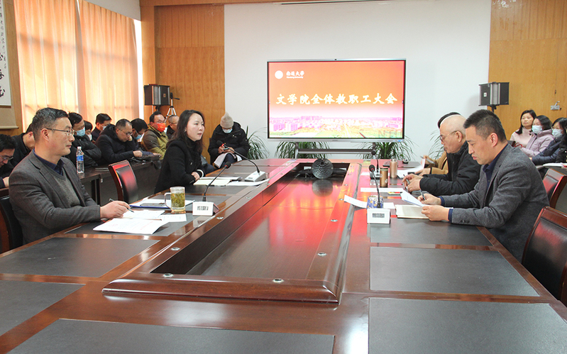 2月24日下午,文学院召开新学期全体教职工大会,学习贯彻校第四届教职工代表大会暨第三届工会会员代表大会第四次会议精神,部署新学期重点工作。