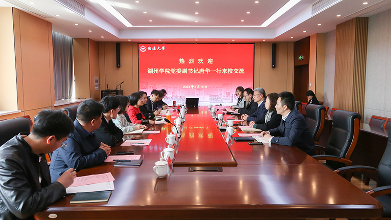 3月16日,湖州学院党委副书记唐华一行来校调研交流。校党委常委、副校长侯文华接待了来宾。