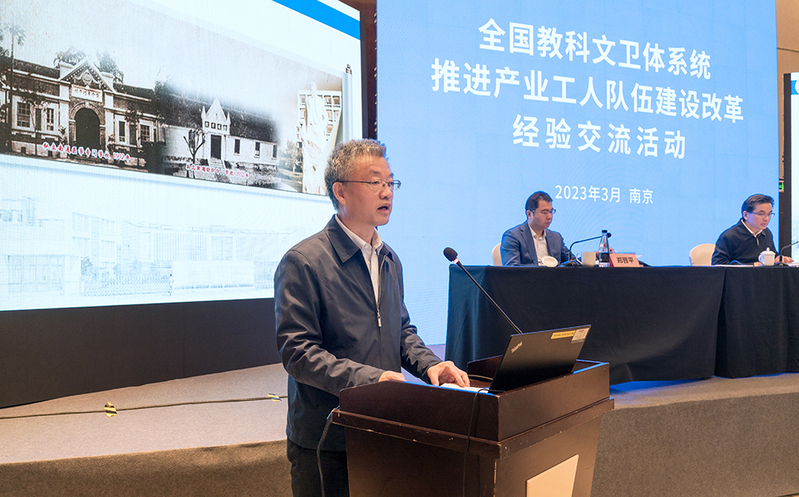 3月28日,全国教科文卫系统推进产业工人队伍建设改革经验交流会在南京召开。中国教科文卫体工会主席章国贤,江苏省总工会副主席井良强出席会议并讲话。大会共安排10家单位进行经验交流发言,校党委常委、副校长侯文华作为项目试点唯一本科院校代表应邀在会上作经验交流。
