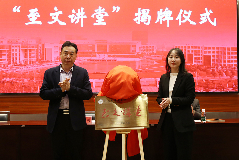 校党委常委、副校长吉明明为“至文讲堂”揭牌。