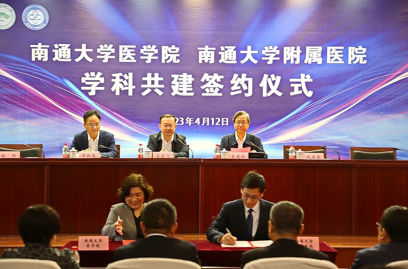 尚庆飞对双方的成功签约表示祝贺。他指出,医学教育是南通大学的传统和优势,是学校的一块金字招牌,也是实现特色鲜明办学目标的重要支撑点之一。医学院和附属医院作为同根同源的两家单位,要打破前后期壁垒,推动人才队伍大融合大发展;要加强内涵建设,实现优势学科更高质量发展;要贯彻新发展理念,统筹相关学科协同发展。他希望,双方以本次学科共建为契机,长效推动基础医学与临床医学深入融合发展,打造基础临床交叉融合创新的“通大品牌”,打造面向人民生命健康的学科交叉融合新高地,形成我校医学教育独有的学科文化和发展特色。