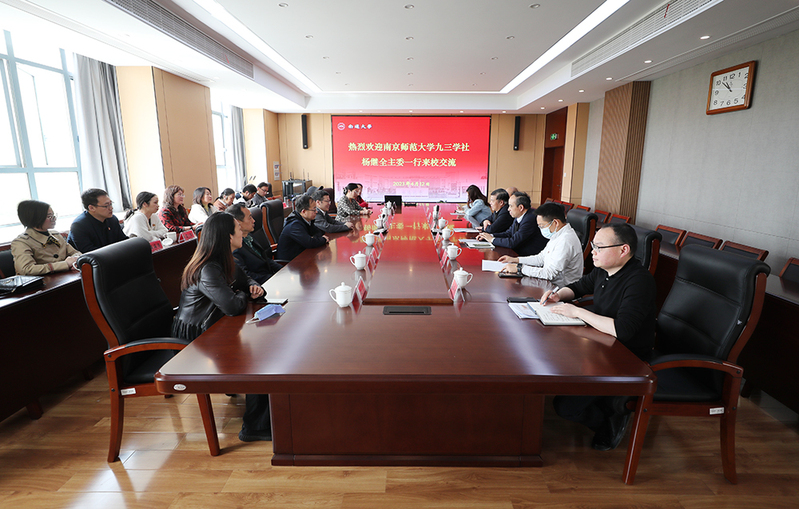 4月12日上午,南京师范大学九三学社杨继全主委一行来校交流。九三学社省委副主委、校长施卫东出席座谈会。