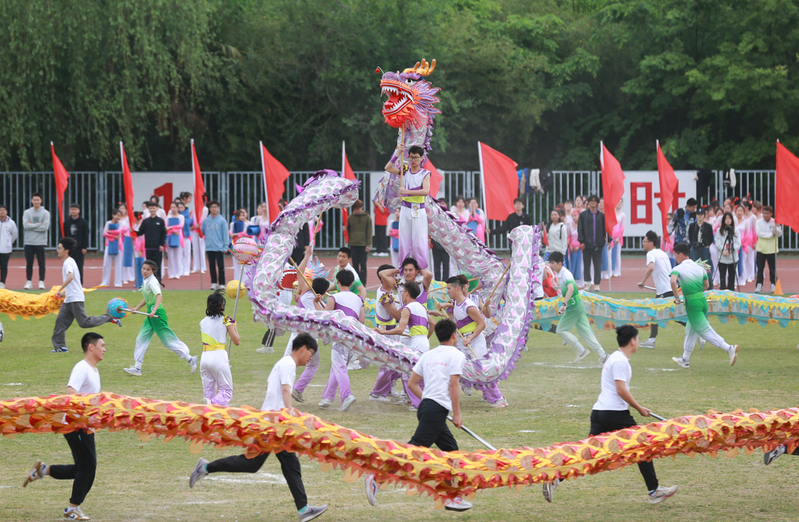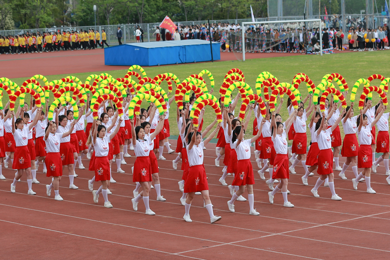 开幕式上,体育科学学院王维军老师、公共卫生学院赵如良同学分别代表裁判员、运动员宣誓。活力四射的文体表演将运动会开幕式推向高潮。在阵阵雄浑激昂的鼓声中,体育科学学院的舞龙舞狮表演,龙腾狮舞、气势如虹;由经济与管理学院、教育科学学院、外国语学院、纺织服装学院、机械工程学院的100名同学带来的太极拳表演,于动静之间展现中华优秀传统文化之美;体育科学学院的啦啦操团队踏着动感的节拍,舞动青春的活力;来自马克思主义学院、外国语学院、教育科学学院、经济与管理学院、化学化工学院、信息科学技术学院的100名同学表演了瑜伽团体操《万疆》,用整齐的动作诠释运动的美,用优美的舞姿表达对祖国的礼赞;体育科学学院教师和我校排舞队、“逐梦追光”排舞社团、启秀校区排舞公共体育课的100名同学一同表演了排舞串烧《扑通·栀子花开》,热情洋溢的舞姿诠释了健康快乐、积极向上的体育运动精神。