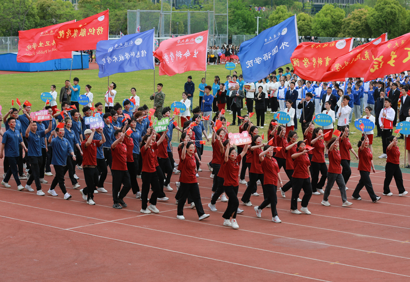 庄严的升旗仪式后,施卫东致开幕词,对运动会的召开表示热烈的祝贺,向全体运动员、教练员、裁判员表示良好的祝愿,向为筹备本届运动会付出辛勤劳动的全体工作人员表示诚挚的感谢。他指出,发展体育运动,增强人民体质,一直以来都是党和国家的体育方针。体育作为学校教育的重要组成部分,是实现立德树人根本任务的基础性工程,对于培养学生爱国主义、集体主义、社会主义精神和奋发向上、顽强拼搏的意志品质,实现“以体育智、以体育心”具有重要意义。施卫东回顾了我校优良的体育传统以及近年来体育工作所取得的成果。他说,一流的大学必然有一流的体育教育和体育文化,在学校高水平大学建设的征程中,发展体育运动必不可少、提高体育水平必不可少、弘扬体育精神必不可少。他希望全体运动员弘扬“更快、更高、更强”的奥林匹克精神,在比赛中勇于挑战、顽强拼博,尊重对手、尊重裁判,赛出风格,赛出水平,赛出友谊;希望全体裁判员本着“严肃、认真、公正、准确”的态度,恪守规则、公正裁决、尽职尽责;希望全体工作人员密切配合、主动服务、热情周到、保障安全;希望全体学生借助此次运动之旅,更加重视体育锻炼,养成良好的运动习惯,争做“德才兼备、体魄健全”的新时代通大人;希望在全校上下形成热爱体育运动、弘扬体育精神的浓厚氛围,将体育运动中所蕴涵的“不断进取、勇攀高峰”的拼搏精神和“自尊自信、自立自强”的人生信念,转化为个人成长成才的强大动力,转化为推动学校高质量发展的实际行动,在新征程中勇攀新高峰、再创新辉煌。