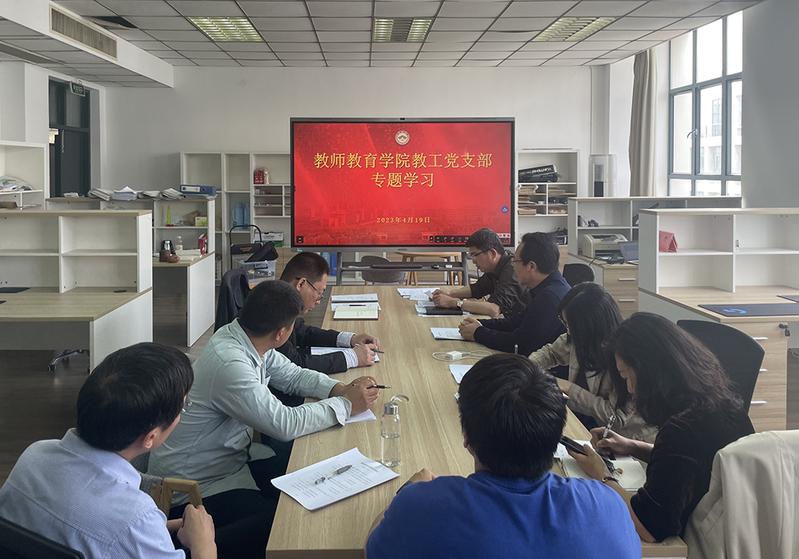 4月19日下午,教师教育学院教工党支部召开专题会议,传达学校学习贯彻习近平新时代中国特色社会主义思想主题教育动员会精神。学院党委副书记、副院长姜永杰主持会议。