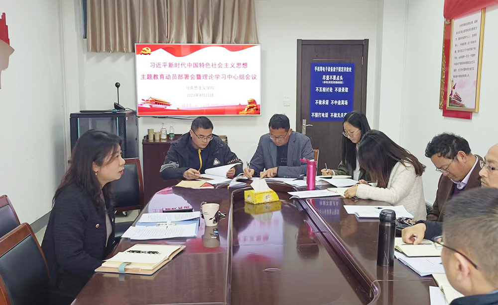 4月23日,马克思主义学院召开学习贯彻习近平新时代中国特色社会主义思想主题教育动员部署会,传达学校学习贯彻习近平新时代中国特色社会主义思想主题教育动员大会精神,对学院开展主题教育进行动员部署。