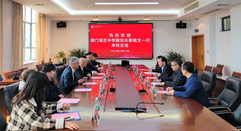 4月24日,澳门培正中学副校长郭敬文一行10人访问我校。校党委常委、副校长王卫东会见了来宾。