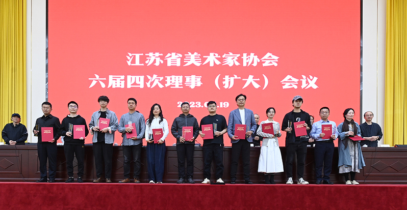 近日,江苏省美术家协会六届四次理事(扩大)会议在苏州市吴江区举行,表彰了一批先进单位和先进个人。我校艺术学院美术馆被评为2022年度省美协组织工作先进单位,美术馆馆长江严冰被评为2022年度省美协组织工作先进个人。我校艺术学院教师冯卫军的作品《叼羊》、周建捷的作品《白夜》、马蕾的作品《港口2》在2022江苏省文艺大奖第四届美术奖中获美术奖。