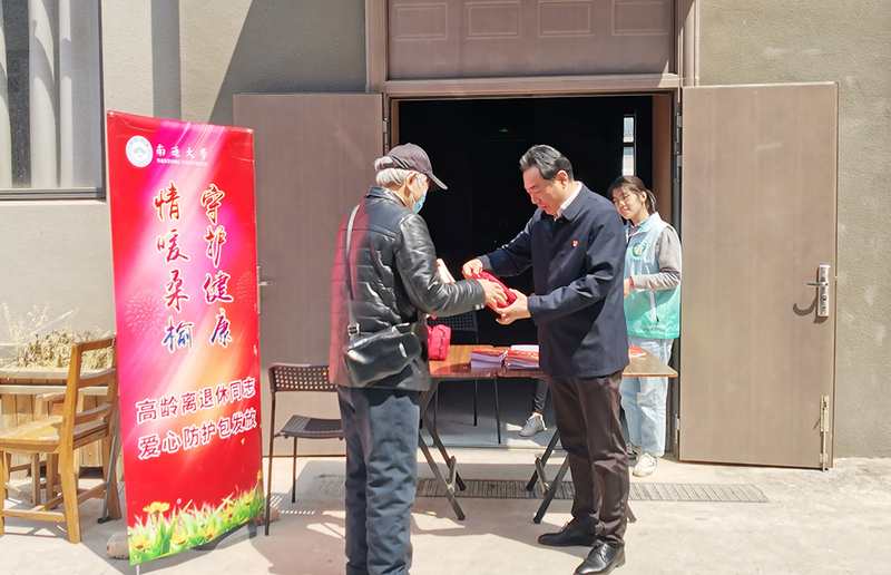 我校为高龄离退休同志发放爱心防护包。