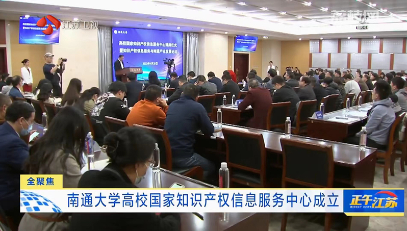 4月25日,江苏电视台以《南通大学高校国家知识产权信息服务中心成立》为题,关注南通大学高校国家知识产权信息服务中心揭牌仪式暨知识产权信息服务与南通产业发展论坛。